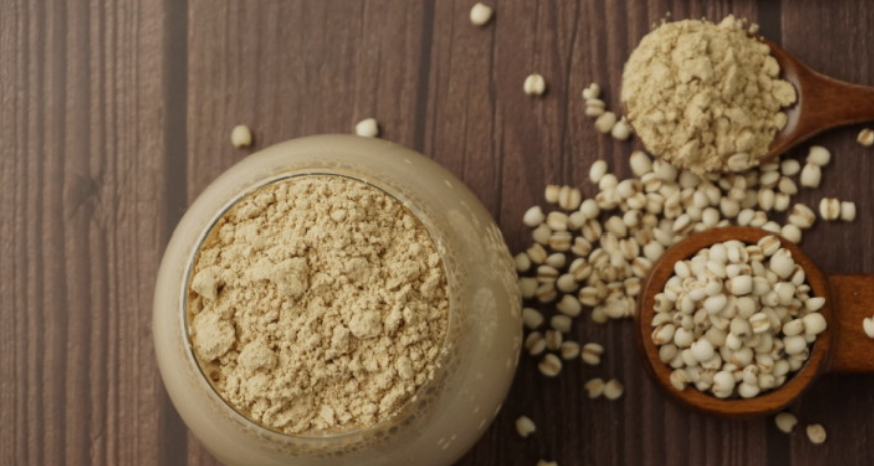 2) 꿀이 있다면 약간의 물과 함께 섞어 율무와 전분가루에 넣어줍니다. 꿀은 피부에 보습 효과를 주는데 도움을 줄 수 있습니다. 하지만 꿀이 없다면 생율무가루만 사용해도 효과가 좋습니다.